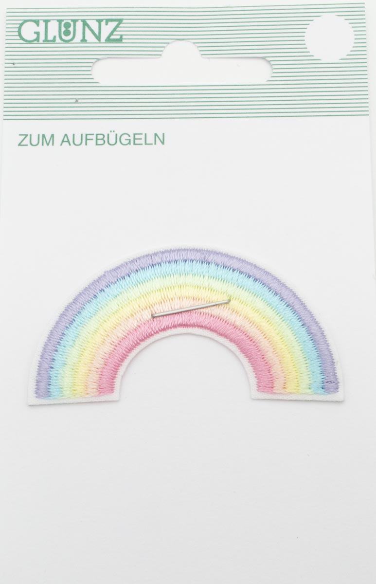 Regenbogenapplikation in Pastellfarben zum Aufbügeln.
