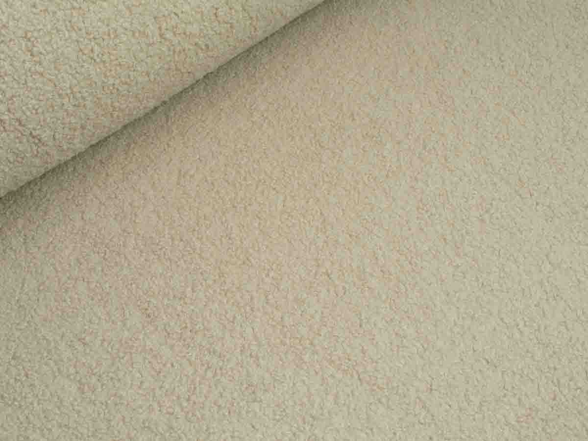 Kuscheliger Boucle mit glatter, gewebter Rückseite.