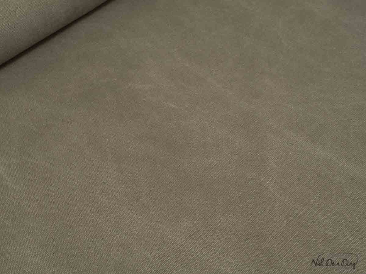 Fester Canvas, gewachst, und damit wasserabweisend. Perfekt für Jacken, Taschen oder Dekoartikel.