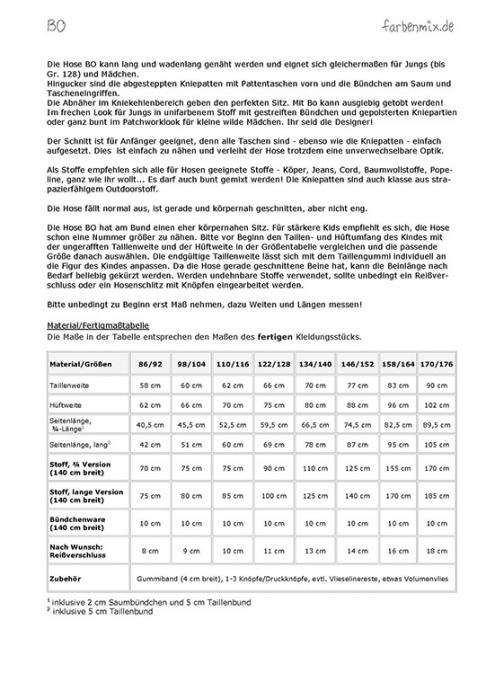 Bo kann lang und wadenlang genäht werden und eignet sich für Jungs (bis Gr. 128) und für Mädchen.