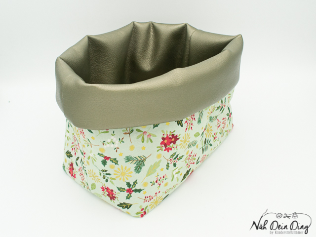 Dekorativer Stoffkorb zum Befüllen, auch gewendet nutzbar, gepolstert mit Volumenvlies.