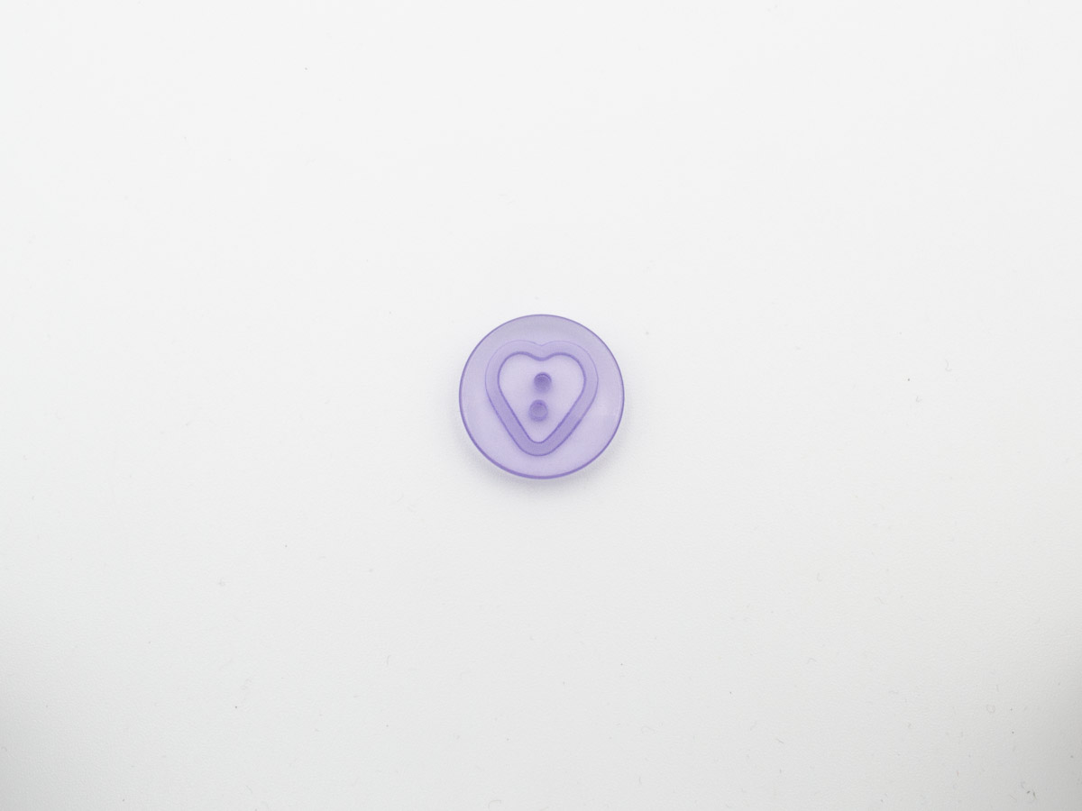 Knopf, 17 mm, 2Loch, lila, transparent mit Herz