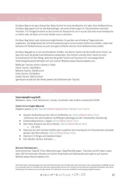 Wie der Name schon sagt ist dies ein Schnitt für eine klassische Handtasche mit oder ohnen Reißverschluss. Es gibt verschiedene Variationsmöglichkeiten der Gestaltung und es sind 4 verschiedene Größen enthalten.