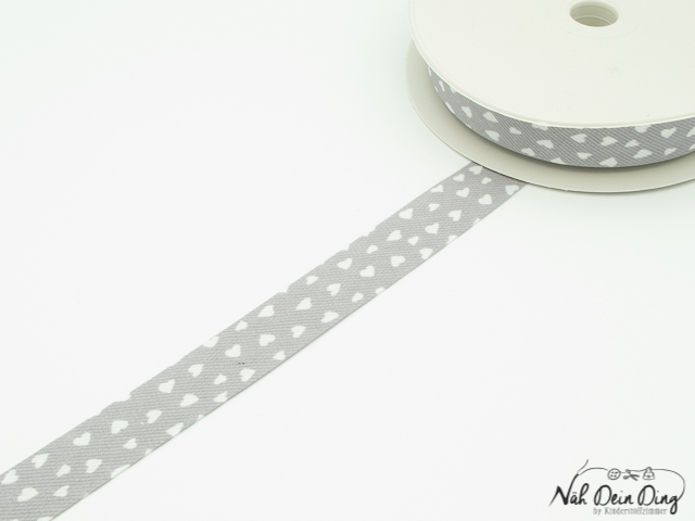 Baumwoll-Schrägband gefalzt 40/20 Herzchen, grau