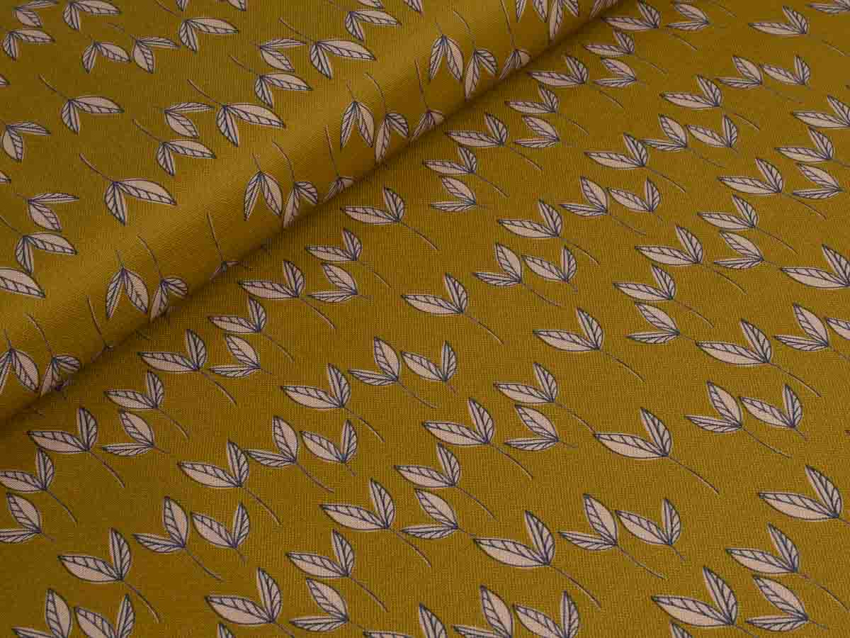 Canvas in senfgelb mit altrosa Blättern.