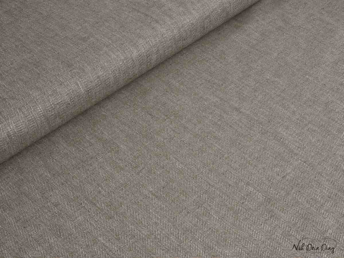 Leinen-/Baumwollmischung braun mit feinem Fischgrätmuster