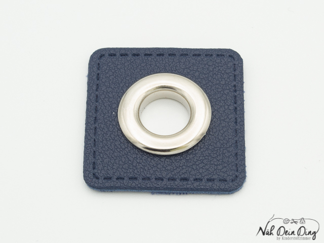 Ösen Patch quadratisch (33 mm) aus Kunstleder mit silberner Öse (10 mm Durchmesser).