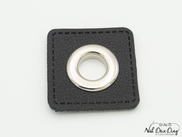 Ösen Patch quadratisch (33 mm) aus Kunstleder mit silberner Öse (10 mm Durchmesser).