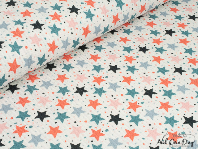 Sterne und Punkte in verschiedenen Farben auf leichtem Waffeljersey.