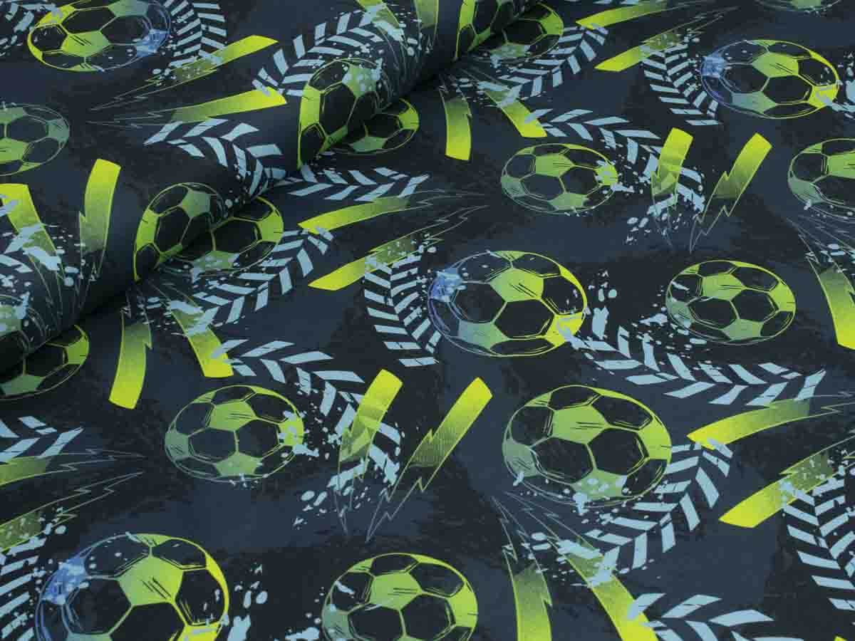 Baumwollstoff Fußball, blau/grün