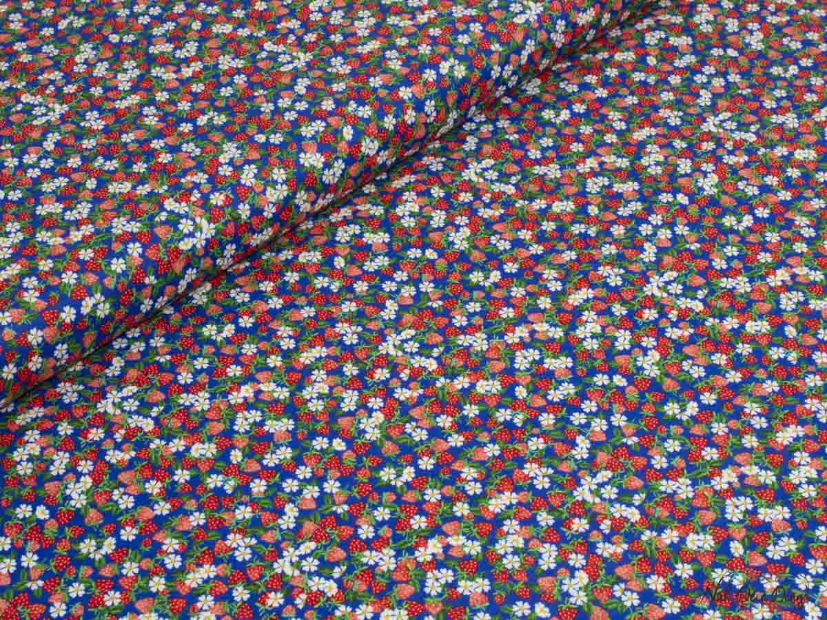 Süße Mini-Erdbeeren auf blauem Hintergrund.