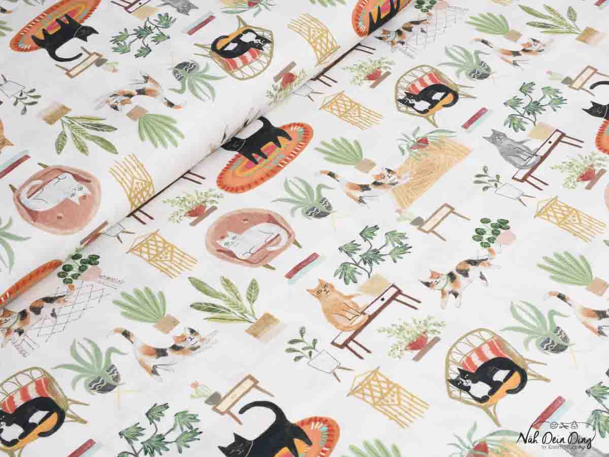 Baumwollstoff botanical cat