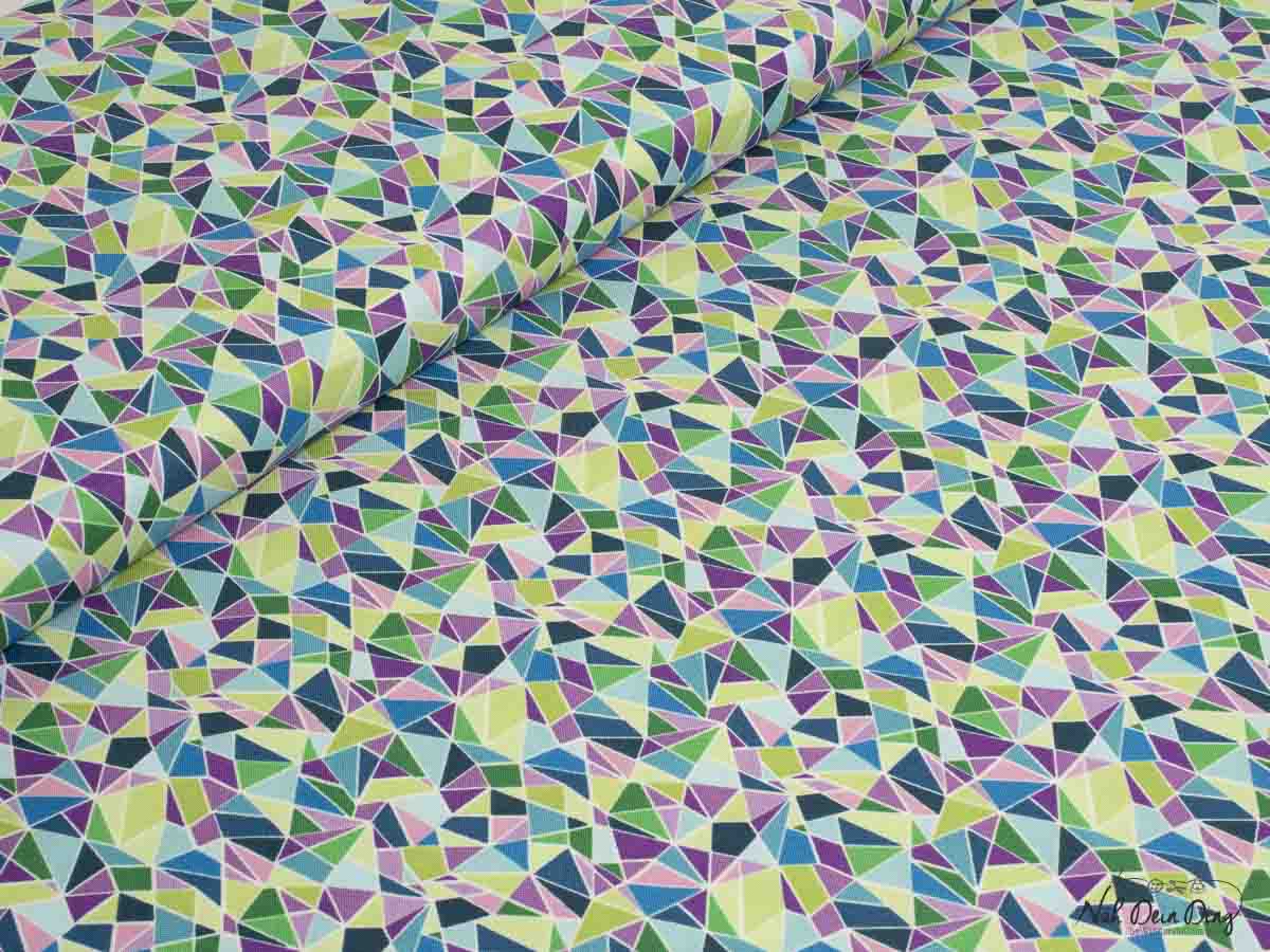 Bunte Mosaiksteinchen auf Baumwoll-Webware.