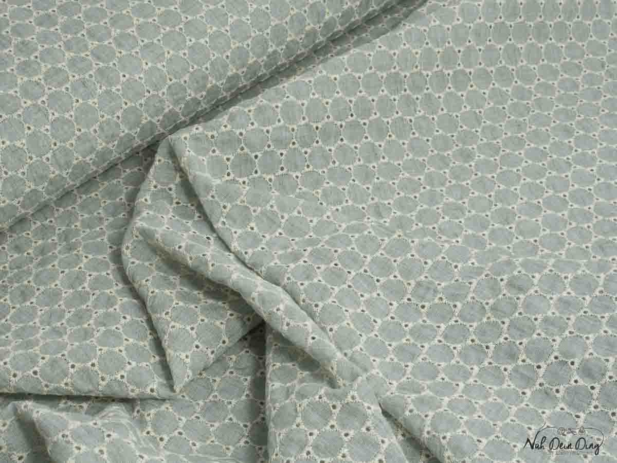 Schöne Lochstickerei in creme auf mintfarbenem Voile.