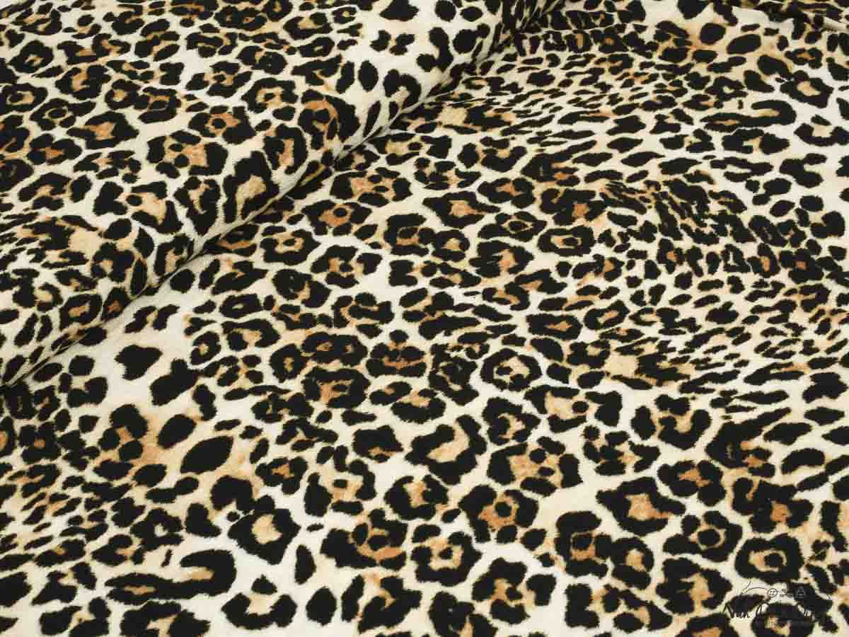 Leicht und luftig fallender Viskose-Webstoff mit angesagtem Leomuster auf griffiger Oberfläche.