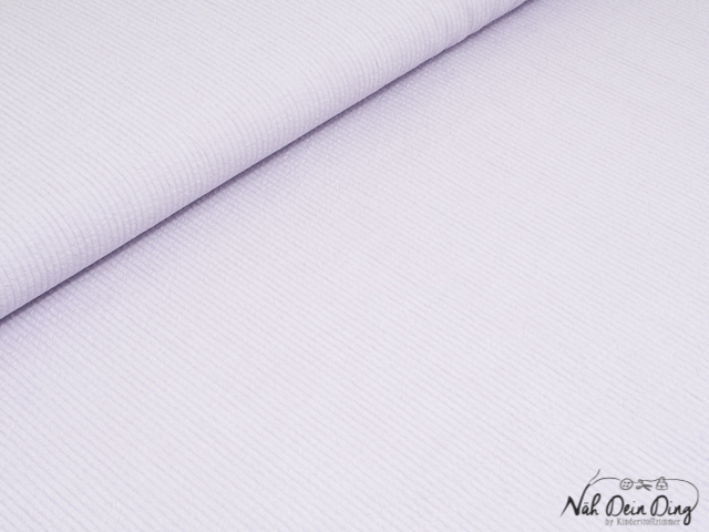 Garngefärbter, leichter Streifenstoff in flieder. Perfekt für Blusen, Kleider, Hosen, Tücher. Die Oberfläche ist leicht wellig (Seersucker-Qualität).